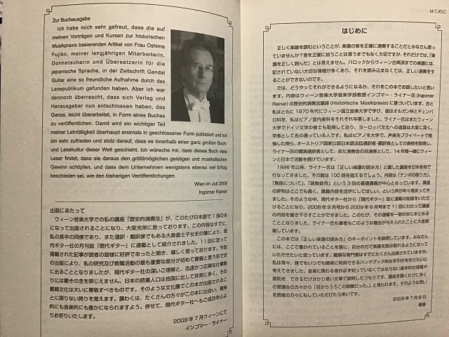 現代の記譜法に近い時代のものであれば、譜面だけで事足りる場合が多いかもしれませんが、バロック期とそれに続く古典派の時代の曲については現代の楽器とは異なる古楽器が使用されている点もあり、ロマン派時代以降の現代とほぼ変わらない楽器と記譜法の場合とは区別して扱う必要がありそう。 もちろん先に紹介した曲集には奏法解説や装飾音の演奏譜が最低限書かれていますが、それで十分とは誰も思わないでしょう。 普通はちゃんとした教師の下で学ぶのを前提としています。 独学者はそれでは足らないのではないでしょうか? そんな不安を裏付けるように、バロック時代の楽曲の譜読みに関しては様々な研究が行われ、分厚い本もあったりします。 出版されている全部の本に読むというわけにもいかないので、バロック期の楽曲に取り組むのであれば、これは座右の書とすべきという本が一冊だけありますので紹介します。 「正しい楽譜の読み方 バッファからシューベルトまで 〜ウィーン音楽大学インゴマー・ライナー教授の講義ノート〜」 大島富士子 著 ウィーン文化芸術協会 後援 現代ギター社 出版 ![]() 2009年初版で比較的近年出版された本で古い人は知らないかも。手元にあるものは2018年第10版とあるのでコンスタントに需要がある本のようです。 ページ数は85ページで厚くはないですが、内容はぎっしり詰まっていて濃く読み応えがあります。 アマゾンのコメント欄で知ったのですが、著者の大島富士子さんは2016年にお亡くなりになっているらしく大変惜しい人を亡くしたことになります。 本書の内容は著者の前書きにもあるように現代ギター社から出版されている「現代ギター」誌上で連載され、話題を呼び日本国内でインゴマー・ライナー教授と共に講演するなどして評価の高い内容を単行本化したもの。 ![]() 内容は読むとすぐ判りますが、インゴマー・ライナー教授がウィーン音楽大学で教えている講義そのものを著者自身の言葉(日本語)で伝える形になっています。 なので良くある翻訳本のような訳注とかは一切なく、日本語ですべて違和感なく読めるというのはありがたい。 まえがき読むとインゴマー・ライナー教授と著者は同じ頃に共に専攻は異なるものの同じウィーン国立音楽大学で学んだ同志。 著者は数少ないウィーン国家公認日本語法廷通訳者の一人で翻訳はお手の物、まったくお見事です。 こうした方が居られたということを同じ日本人として誇りに思います。 さて時折この本を開いて読み返しながら、譜読みを始めることにします。 一曲の演奏時間が短いものが多いので、それらを複数まとめて同時並行進行することにします。 んじゃまた。 |