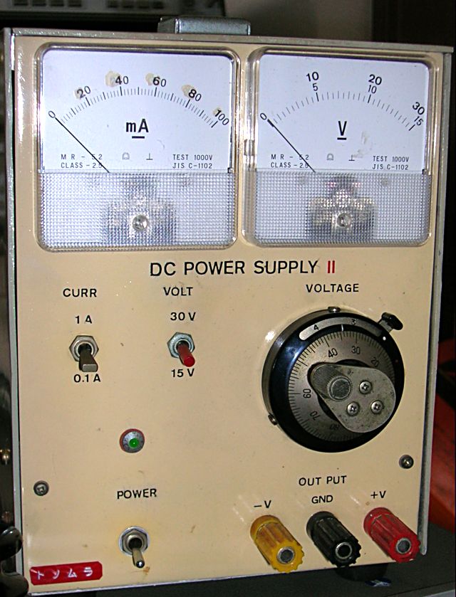 欲しいと思ったのはHP4951AのレストアでDC電源を外部から供給して動作させようとしたときに正負の12Vと+5Vが同時に必要だったのが最初だった。 今まで持っている単出力電源を2つパラに動かして、単出力では-12vを3出力で+12Vと+5Vを供給するという苦肉の策を講じるしかなかった。 世の中に正負電源を同時に設定できるデュアルトラッキング電源があると知ってからは欲しくなった。しかしアナログ回路とかでは当たり前な正負電源を作るにはデュアルトラッキング電源は必需品らしく人気が高くすぐ高値が付いてしまう。 たまたま古いせいか入札がまったくされずに回転寿司状態のデュアルトラッキング電源が出品されているのを発見。誰も入札する気配はなく落札してしまったのがこれ。 ![]() 昭和エレクトロニクスという聞き慣れない会社の製品。かなり古いらしいが動作には問題が無い。正面に会社のロゴの付いた8pin DIPのICが差し込んである。これはロゴなのか機能部品なのかどっちなんだろう。たぶんロゴなんだろうと思うけど。怖くて抜けない。電源スイッチが部品が取れてしまったのかわかり辛い。 よくよく見るとこれはCVCC電源ではなかった。CV(定電圧)だけである。まあそれでも十分である。人気のあるのは電流制限のかけられるCVCCなわけで。 使ってみると電圧電流はディジタル表示なので見やすい。正負アナログ電源とディジタル用電源にバイアス用かECL用の負電源と全部で4出力。謎のプローブ端子とTaという温度表示ボタンがある。もしかして温度センサーのプローブをつなぐと素子の温度とかを測定できるとかいう機能だろうか。おもしろい機能である。使わないけど。 昭和エレクトロニクスはプリント基板設計試作の大手キョウデンの系列だったキョウデンエレクトロニクスの前身の会社であった。名前からして電子機器の設計製造を得意としていたと思われるが後に会社精算している。 測定器にもいろいろ歴史が隠されている。 |