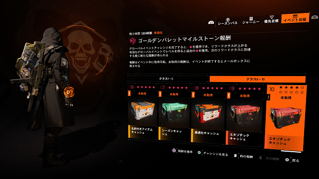 今日で最後のゴールデンバレットも全報酬をゲットしました。普段あまりプレイしないハードコアキャラで全部もらいました。