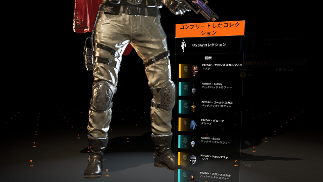 忘れた頃にペイデイコラボイベントの最終報酬が配られていましたよ。これでコラボスキンは完結なのかな。