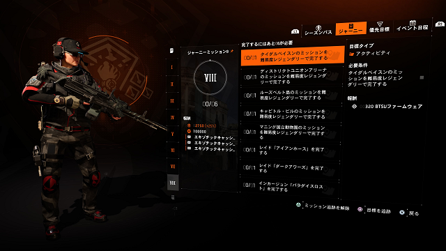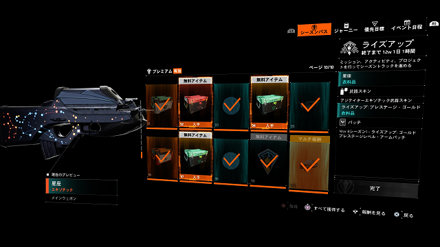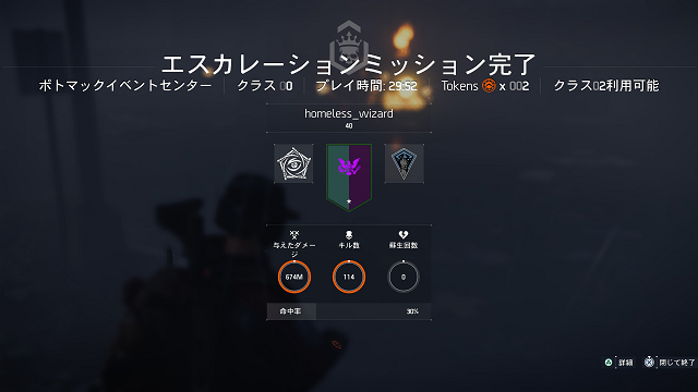 1から7までは従来の優先目標+拠点ミッションと、新たにエスカレーションミッションをこなすことで土日でクリア。シーズンクラスもシーズンパスバンドルで20クリア後、100までクリア。