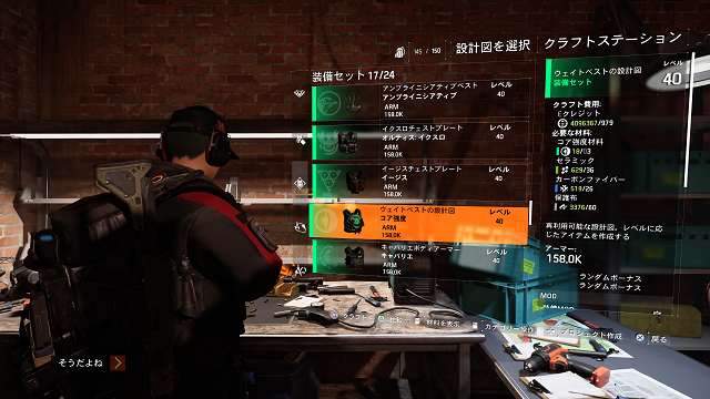 あとは月並み、追加された新しいセットアーマーの設計図を確認。結構良いらしいね。
